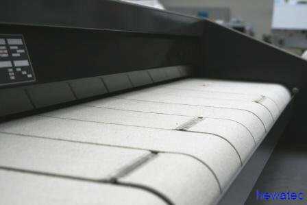 - Aus der Waschschleudermaschine mit einer Restfeuchte bis 56% direkt in die Hochleistungs-Trockenmangel